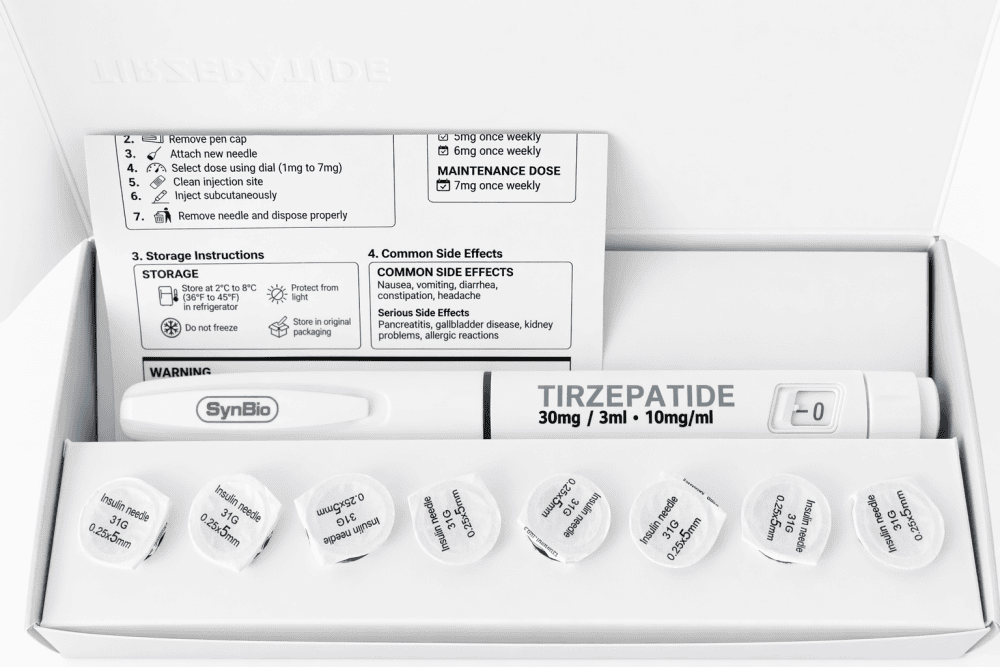 Tirzepatide 30mg pre-filled injection pen, produced to EU quality standards. A dual receptor agonist targeting GLP-1 and GIP pathways — one of the most extensively researched compounds in metabolic and weight management studies.